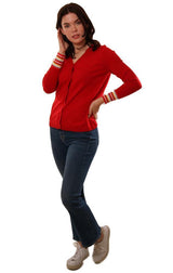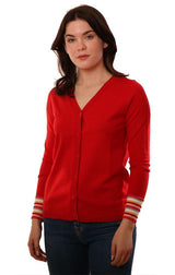 Metric Cardigans Button Front V Neck Fitted Red Knit Sweater