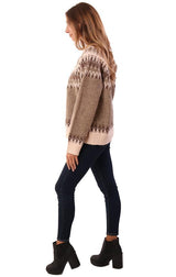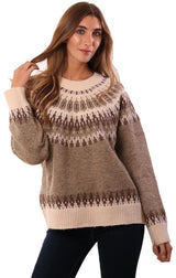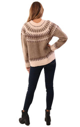 POL Sweaters Long Sleeve Crew Neck Printed Beige Classic Knit Sweater