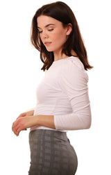 Veronica M Tops Scoop Neck Puff Sleeve Soft Knit White Pullover Top